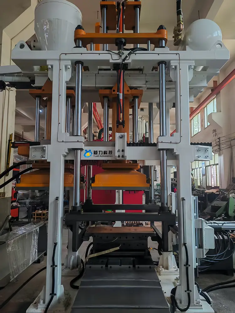 ◇ Интелигентен и ефективен: YL1080H-40A Машината за стрелба със студено сърцевина разполага с висока степен на автоматизация. Той е оборудван с прецизни линейни водачи за отстраняване на ядра от долната форма, което прави отстраняването на ядрото лесно и силно автоматизирано. Тя дава възможност на един човек да управлява множество машини, като гарантира стабилност, гладкост, ефективност и безопасност.