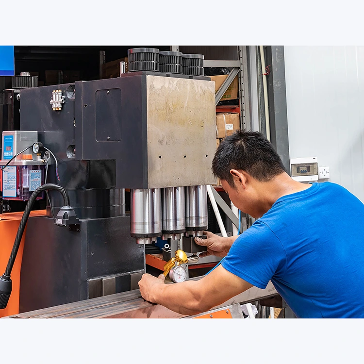 3. Перпендикулярността на водача на Z-ос и работната маса се тества за цялата машина, като се изисква точност в рамките на 0,03 mm.