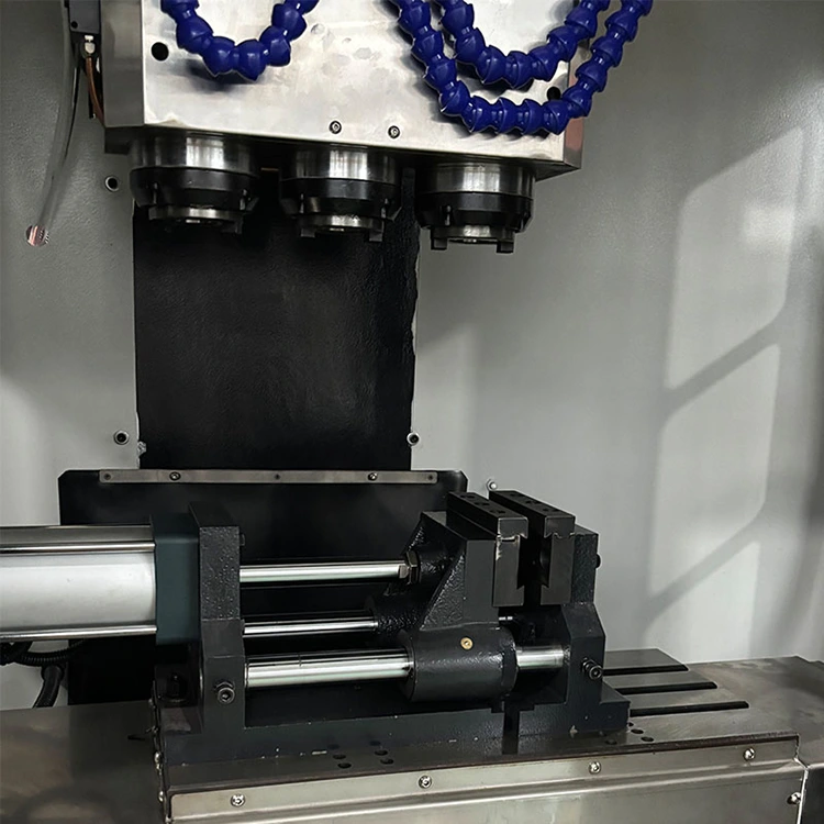 1. Висококачествената вертикална 3-осна CNC комбинирана машина YueLI разполага с триосна CNC функционалност, позволяваща операции по пробиване, нарязване и фрезоване по всяка ос.